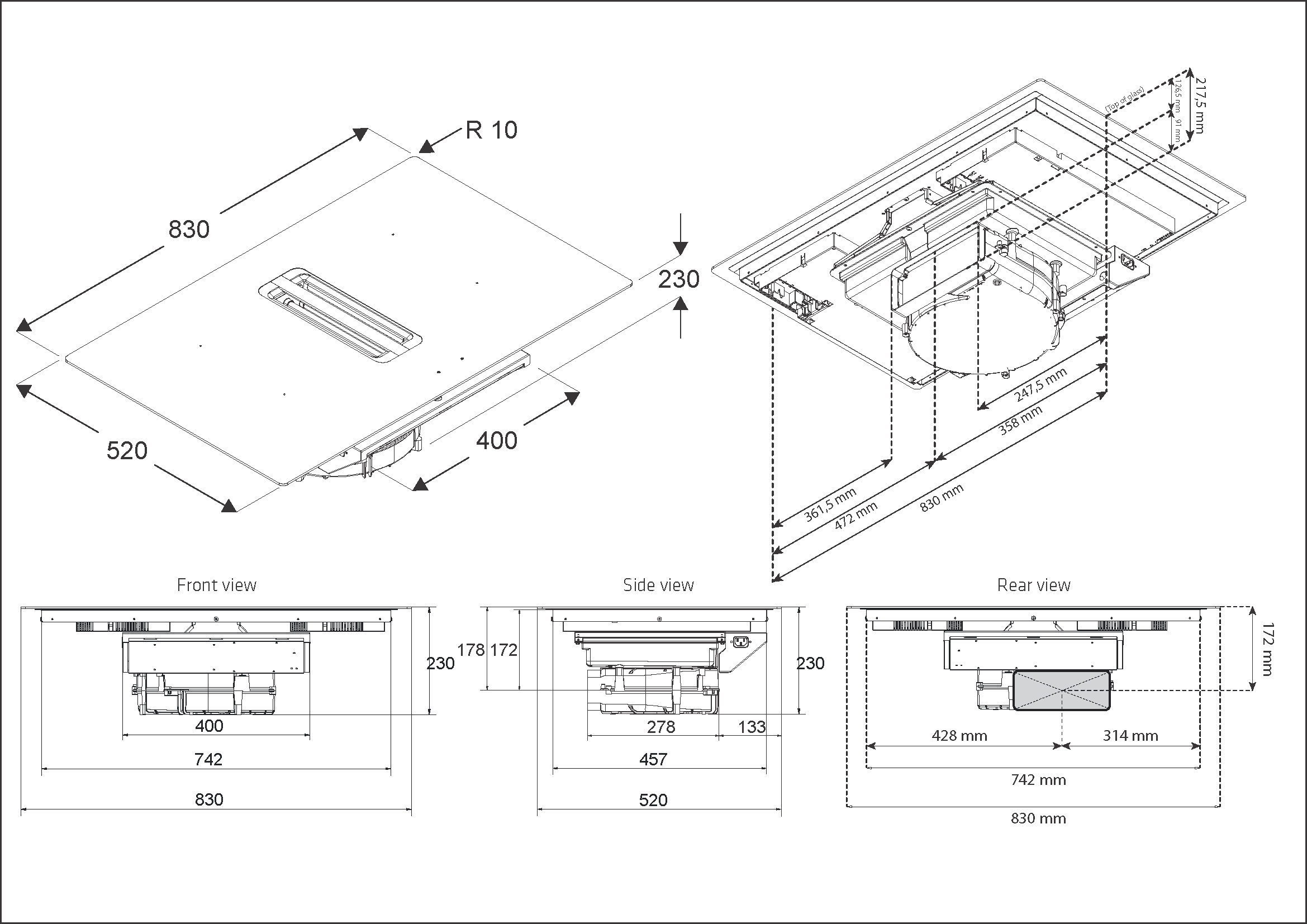 Point POHH7583I4BF Hurricane combines an induction hob and a cooker hood into one appliance. This way you free up space in your kitchen without compromising clean room air. With an effective suction power of 600 m³/h, the cooker hood removes unpleasant cooking fumes from the room air. The induction hob can be flush mounted and can adapt to different sizes of cookware thanks to a bridge function.
